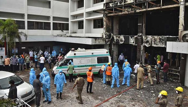 Най-малко 7 души са загинали и 15 са пострадали при пожар, избухнал в индийския хотел "Сварна палас“, който в момента се използва като лечебно заведение за болни от коронавирус.