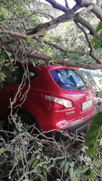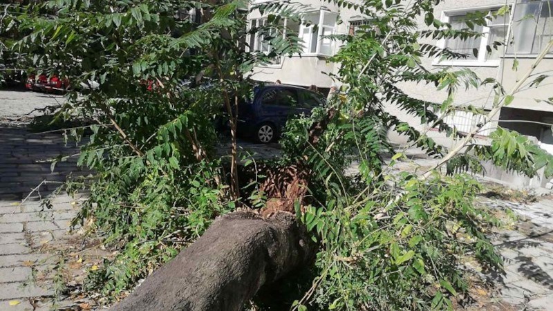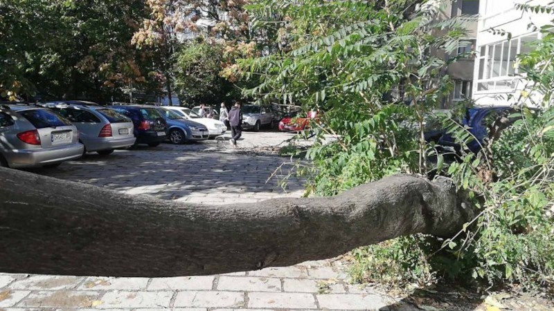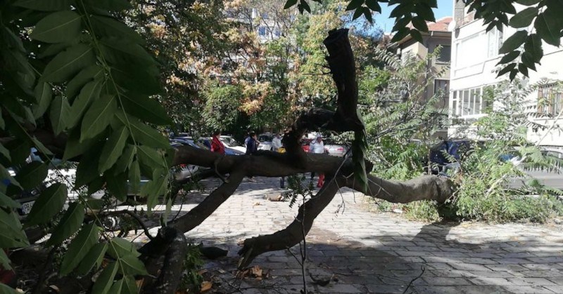 Голямо дърво се стовари върху коли в центъра на Пловдив