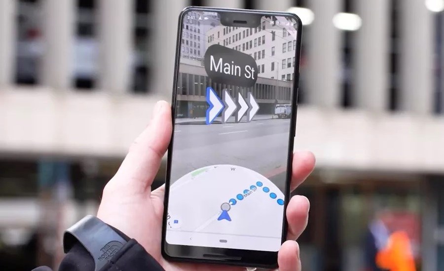 Google демонстрира работата на AR режима в електронните карти, който за първи път бе представен миналото лято.