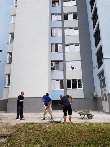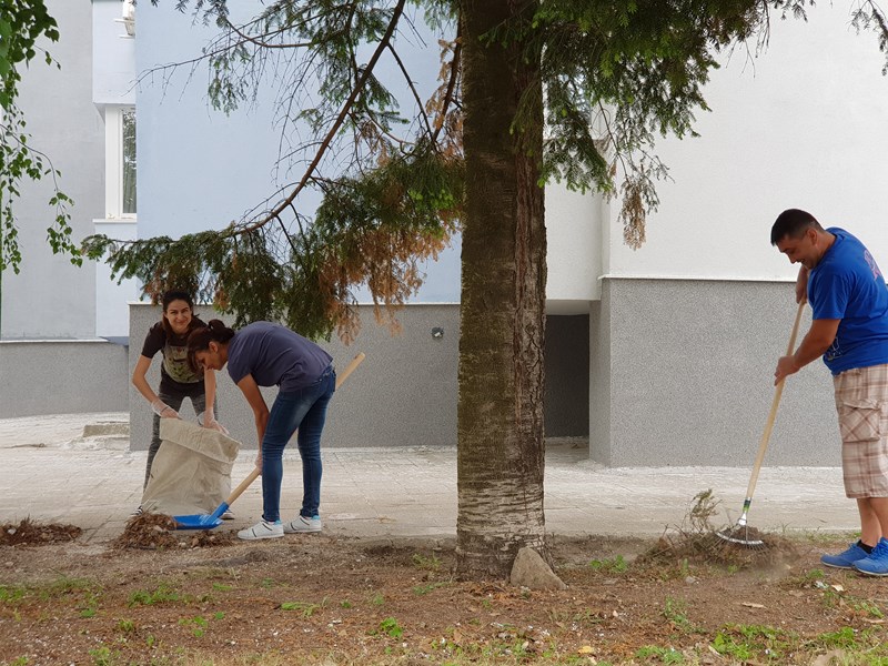 Жители на блок "Жерав" в русенския квартал Здравец, излязоха да почистят след санирането на сградата.