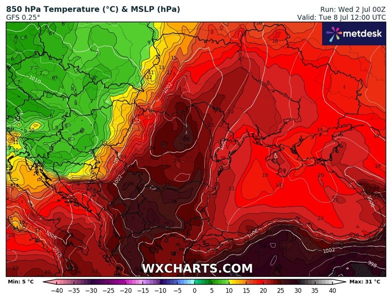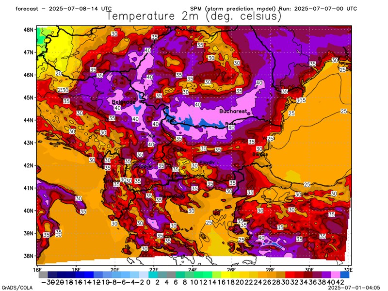 България и целия Балкански полуостров се готвят за петдневна екстремна гореща вълна с температури над 40 градуса. Най-интензивните горещини се очакват на 7 и 8 юли, когато термометърът може да покаже до 43 градуса, предупреждават от Meteo Balkans.