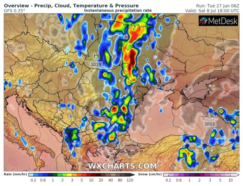 Към края на първото десетдневие на юли и началото на второто (между 6-13 юли) отново се повишава вероятността за валежи на повече места в страната, които ще са и по-значителни по количество, с гръмотевични бури и с условия за градушки.