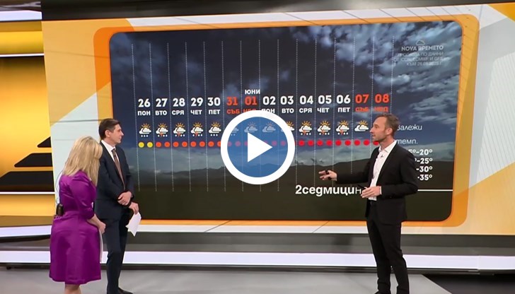 Първата юнска седмица ще бъде слънчева и гореща. Ранните прогнози обаче допускат образуването на локални гръмотевични бури с кратък, интензивен валеж и риск от градушка. Явленията ще бъдат главно в планините, но вероятно ще засегнат и някои населени места около планинските масиви. В хода на първата седмица на юни ще се затопли осезаемо с дневни максимални температури в интервала 25-30 градуса, а в обичайно горещите точки на България – до 31-32 градуса.
