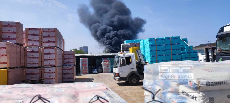 Четири екипа от Областната дирекция "Противопожарна и аварийна безопасност" във Варна работят усилено по потушаването на огнен инцидент, възникнал в строителна борса, разположена в близост до Военноморската болница.
