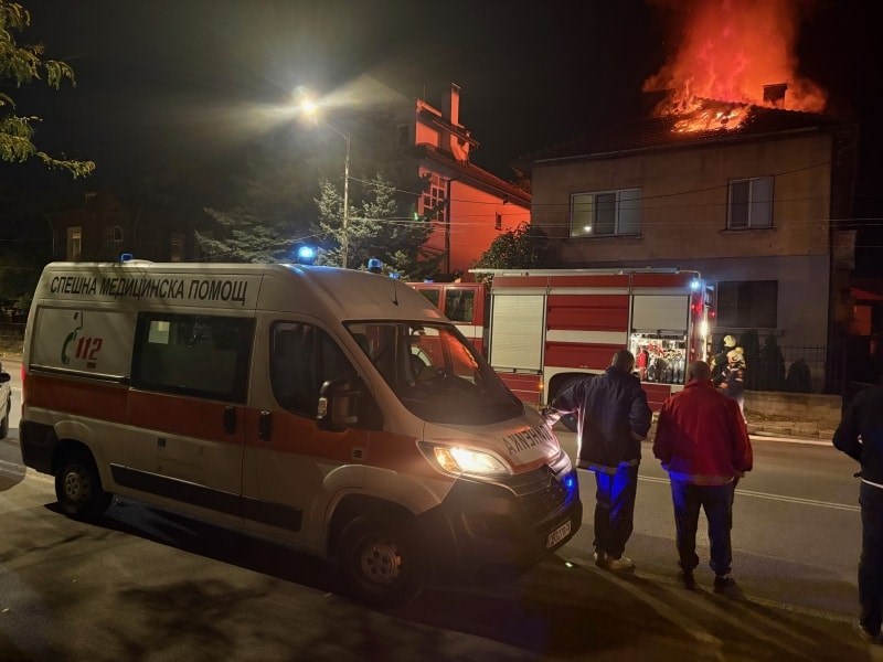 На мястото на инцидента е пристигнала линейка, готова да окаже първа помощ при необходимост. Ситуацията остава напрегната, докато пожарникарите продължават своите усилия за овладяване на огъня и предотвратяване на по-нататъшни щети.