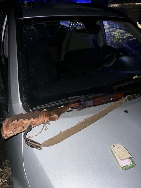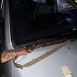 В автомобила инспекторите открили гладкоцевна ловна пушка модел ИЖ-58, заредена с два патрона за едър дивеч, както и допълнителни боеприпаси.