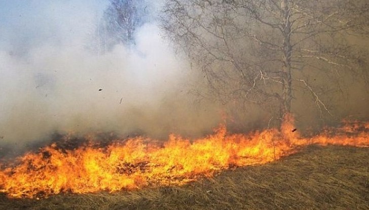 Горяха сухи треви в землището на Голямо Враново