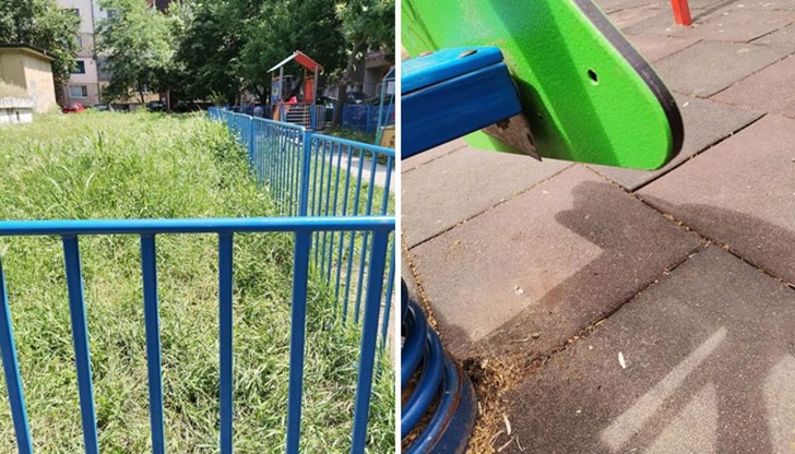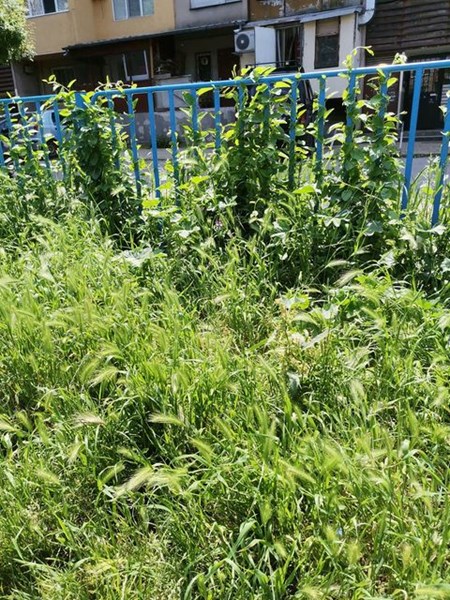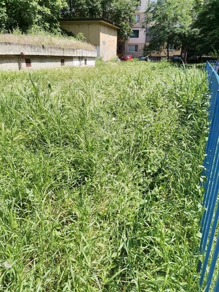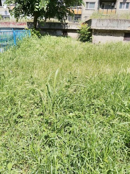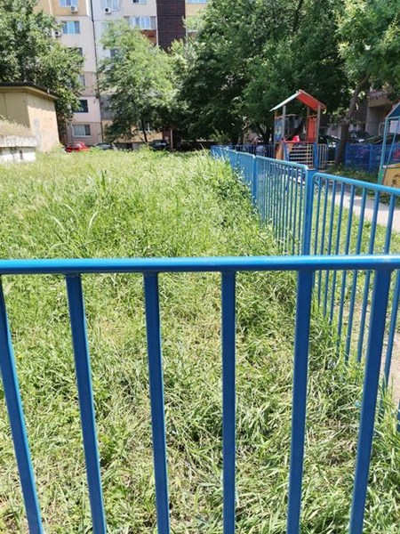 Господин кмете, това е площадката до бл. "КОЛОС". Освен трева, висока колкото оградата, има и кърлежи, сега чакаме и змии да се появяват вече.
