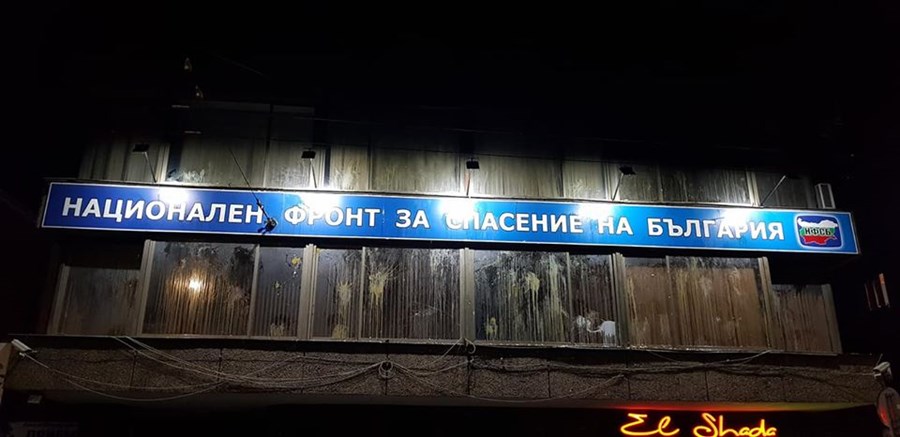 Протестиращи тази вечер хвърляха балони с боя, домати и яйца по сградата на НФСБ