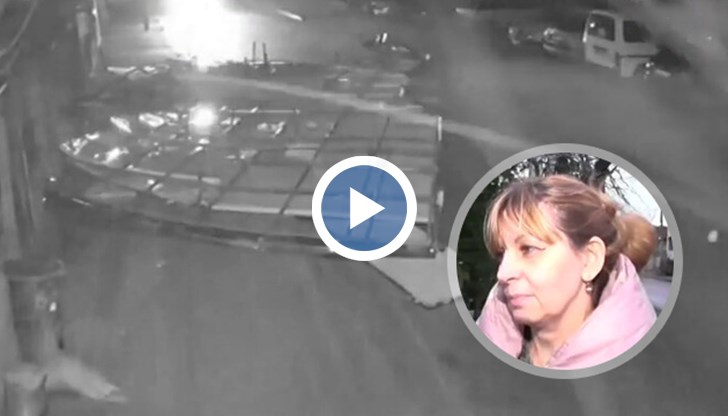 Говори Веселина Русинова - жената, която се размина за секунди с летящ покрив, предава NOVA. Конструкцията, която е покрита с допълнителни покрития, се е вдигнала метри над една от 4-метровите сгради в града. Прелетяла е и се е удрила в ръба на един от блоковете в близост, като е стигала до 7-мия етаж. След това е падала на съседната улица, по която в този момент е вървяла Русинова.