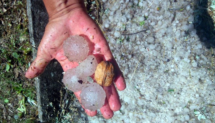 Ледените топчета с големина на орех са образували 3-4 сантиметрова покривка.