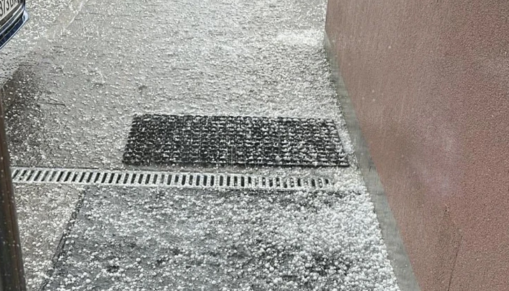От кадрите се виждат ледените късове, които са с размер на грахово зърно. Пороен дъжд е завалял и в село Чепинци.