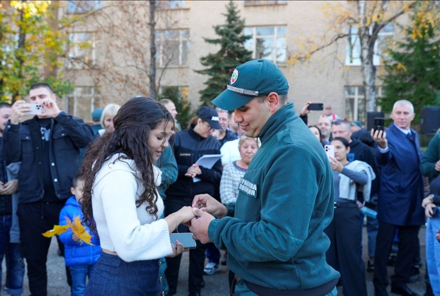 Стажант-граничар избра един от най-тържествените моменти в живота си, за да направи романтично предложение за брак. Борис Христов поиска ръката на приятелката си Стела по време на церемонията по полагане на клетва в Пазарджик, съобщиха от Главна дирекция "Гранична полиция".