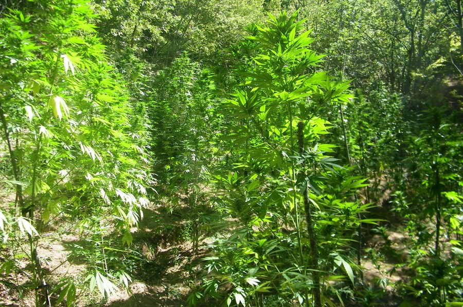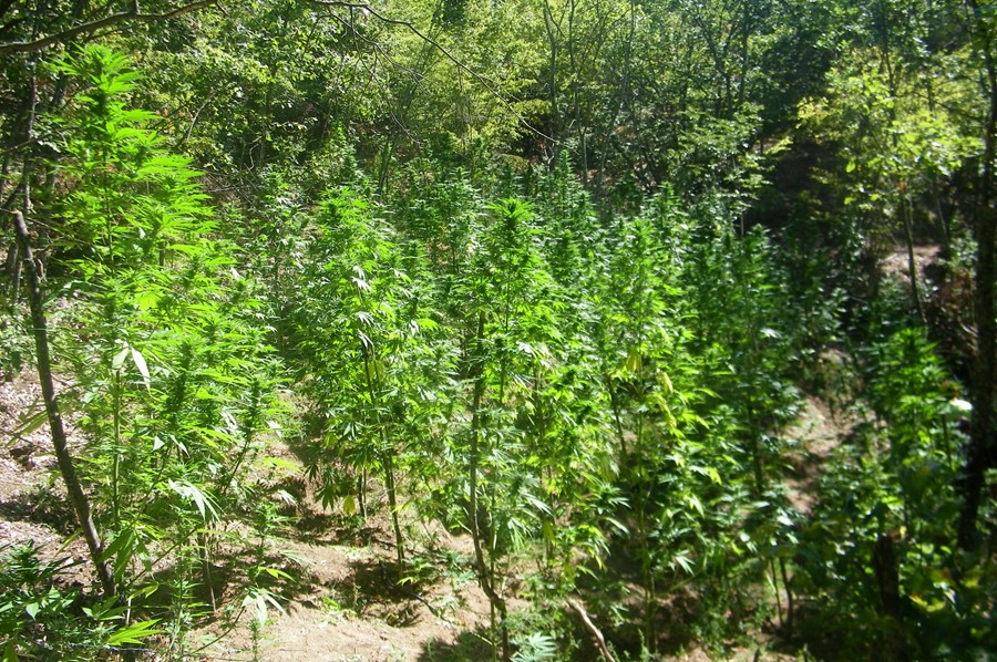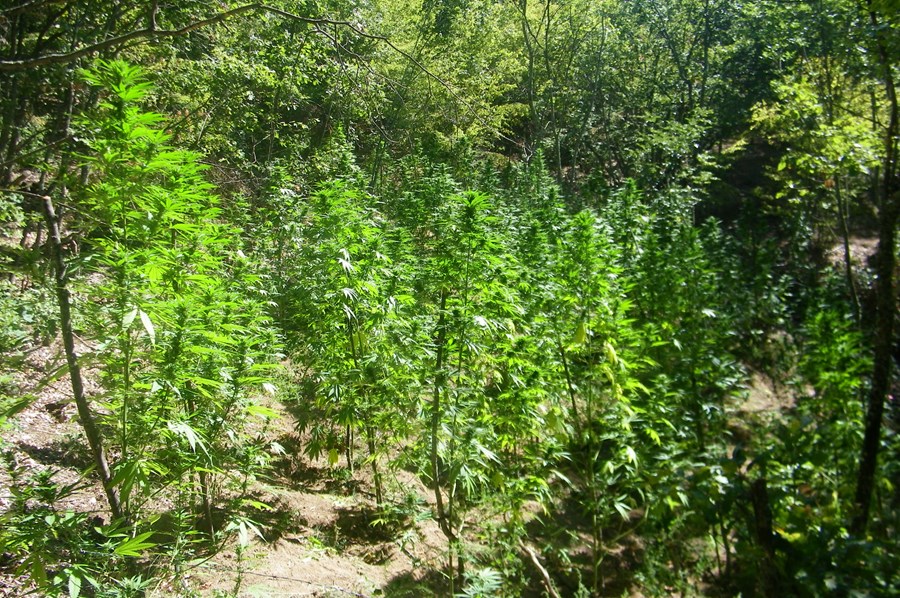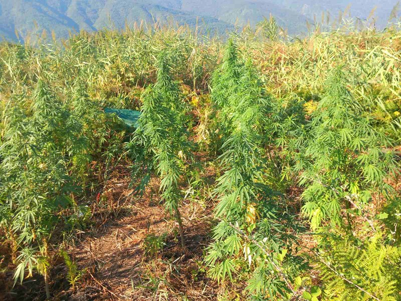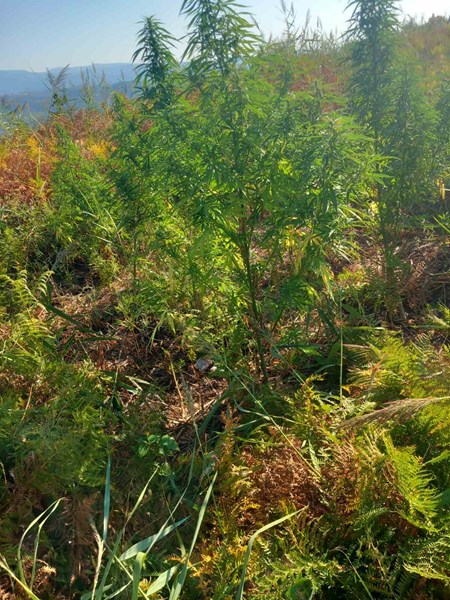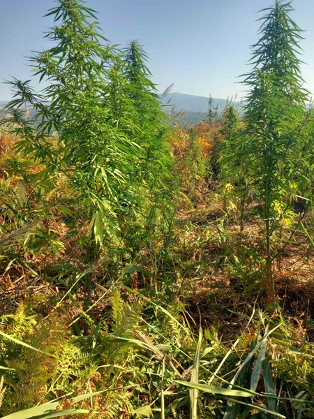 В труднодостъпни планински местности бяха открити общо шест ниви, засети с 250 растения, които при тестване с полеви наркотест реагираха положително на канабис. Общото тегло на иззетите растения достигна почти 480 килограма.