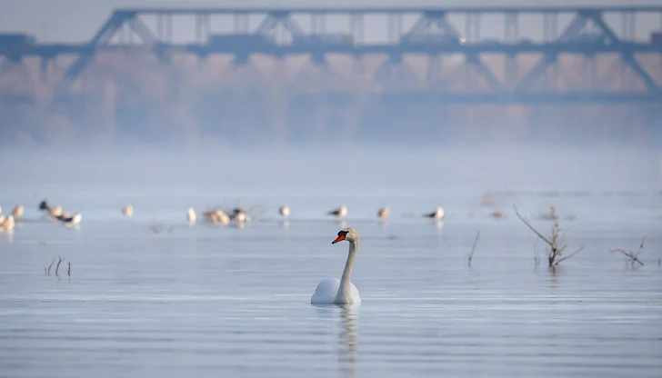 Грациозен лебед, плуващ спокойно във водите на река Дунав, привлече вниманието на русенци и местните рибари днес. Еколюбители успяха да запечатат красивата птица на фона на обвития в зимна мъгла "Дунав мост", превръщайки кадъра в своеобразна емблема на зимната река.