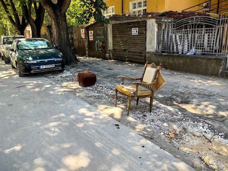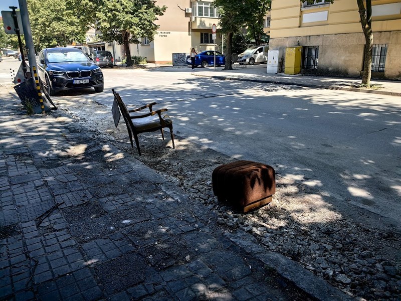 "Граждани от селски тип" са решили да си запазят няколко места за паркиране със табуретка и стол, поставени върху разкопките на ВиК. Любопитната гледка може да видите на улица "Иван Вазов" до математическата гимназия .