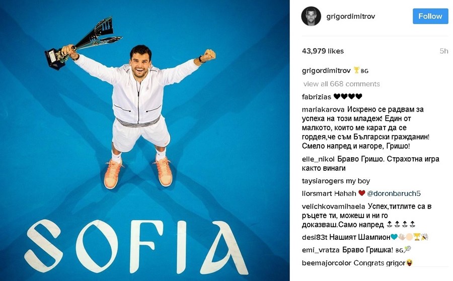 Щастливият Григор Димитров не само зарадва сънародниците си, спечелвайки титлата на турнира София Оупън 2017, а и направи страхотна реклама на България.