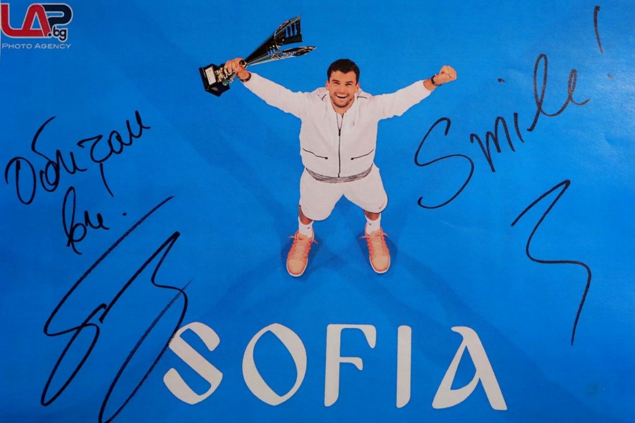 "След благодарност от Българската асоциация на спортните журналисти за позитивизма и извън корта, който стигна чрез медиите до българите, за интересните "ретури" с намигване след въпроси към него, които разнообразиха и нашата работа, Димитров получи току-що направена историческа снимка от официалните фотографи на Garanti Koza Sofia Open - LAP.BG, на която да напише послание към спортните журналисти. Ние си пожелахме повече работни недели с него и да дочакаме понеделника, в който ще го обявим официално за номер едно в света", написаха от БАСЖ.
