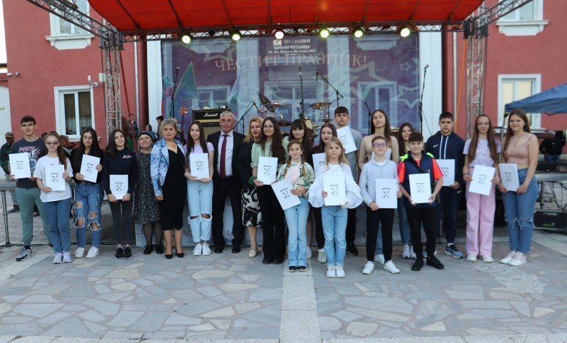 Богатата празнична програма през вчерашния ден включваше детско парти с Камен Гърков и награждаване на близо 30 ученици от общината за постигнати високи успехи в сферата на образованието, спорта и културата през изминалата година.