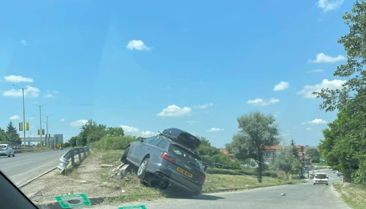 Русенец публикува в социалните мрежи зрелищен кадър, на който се вижда как автомобил с чужда регистрация не е могъл да вземе завоя при отбивката от международния път към квартал "Родина".