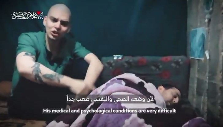Говорейки под натиск, подобно на всички заложници, които се появяват във видеоклиповете на бригадите "Иззедин ал Касам", мъжът с бръснатата глава обяснява, че неговият другар е в много тежко физическо и психическо състояние. Той отправя призив към израелските лидери да прекратят войната в Газа.