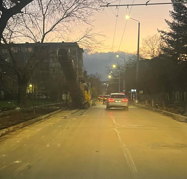 В 16:40 часа строителни машини са били оставени на разкопаното платно, създавайки хаос в движението.