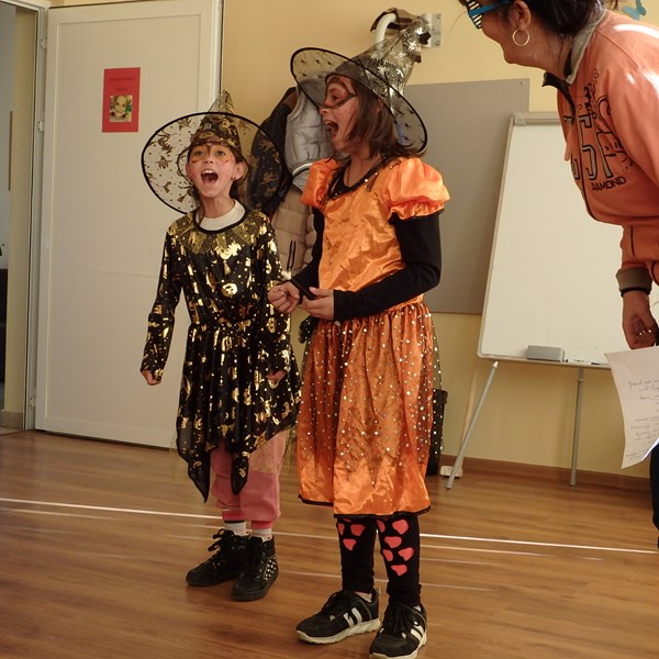 Участниците в партито разказаха историята на празника, с който маскирани гонят злите духове от домовете. На подиума излязоха деца с костюми на скелети, вещици, Спайдермен, феи, Тиквичка, Аладин. Всички участници се включиха в различни игри, подготвени от персонала. Състезанията съвсем естествено бяха съобразени с традициите на празника. Малчуганите се включиха в надпревара за най-страшен писък, танц на вещиците, бързо пиене на сок и изпълняване на желание. Победителите получиха и символични награди.