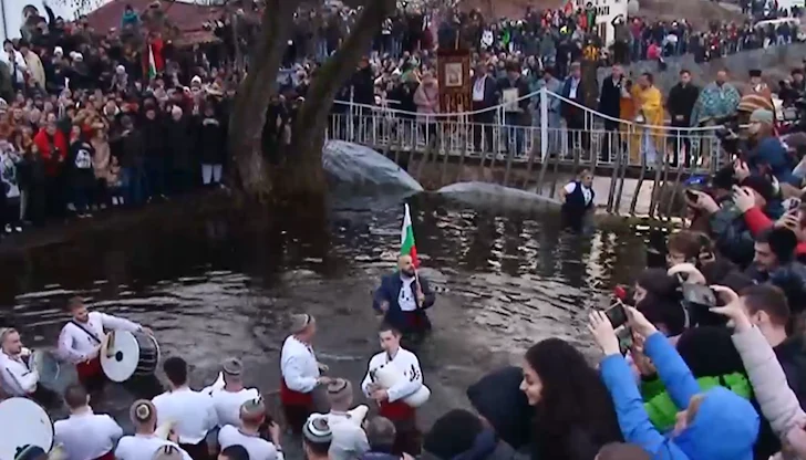 Стотици мъже влязоха в ледените води на река Тунджа в Калофер тази сутрин, за да спазят вековната традиция на Богоявление. Ритуалът по хвърлянето на светия кръст се проведе малко преди 08:00 часа под звуците на тъпани и гайди, съобщиха очевидци и медийни източници, цитирани от NOVA и БТА.