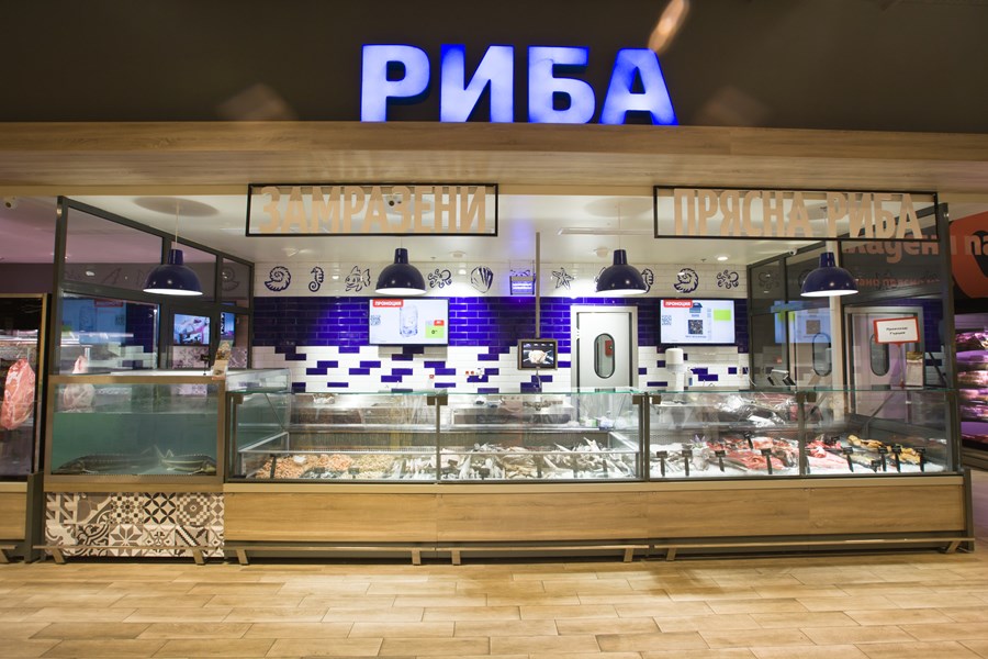 Рибен щанд EDEA предлага богато разнообразие от жива, прясна и замразена риба от местен производител. Студено-пушен и топло-пушенен толстолоб, пресен шаран и амур, охладена ципура, лаврак и сьомга. Несъмнено голямата атракция на рибния щанд е аквариума със жива есетра! Само в EDEA клиента получава услугата „транжиране на риба”. Живата риба може да бъде почистена и нарязана на филе или котлет. Единствено в EDEA ако клиента не намира търсената риба, може да я заяви!