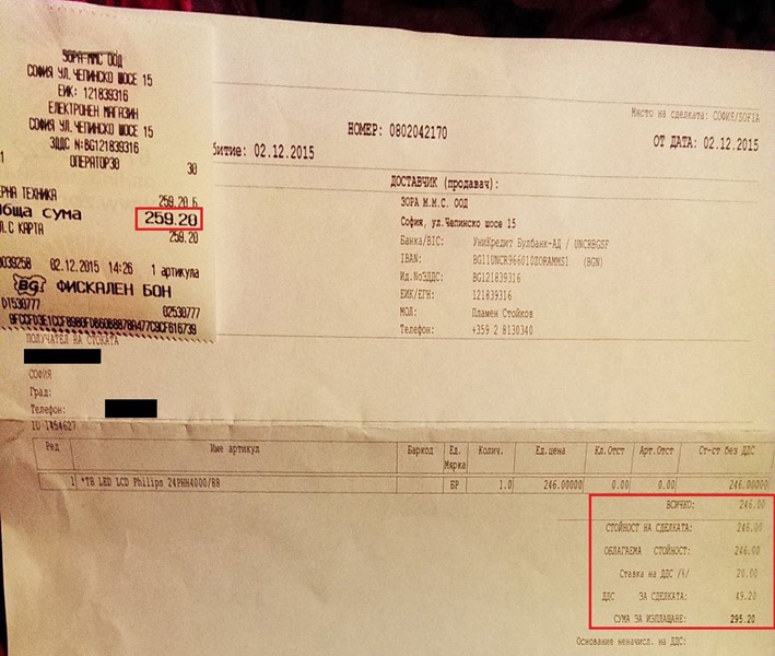 Това, което ми направи впечатление е опита за прикриване на доходи с фактурата и касовата бележка, която са ми изпратили.