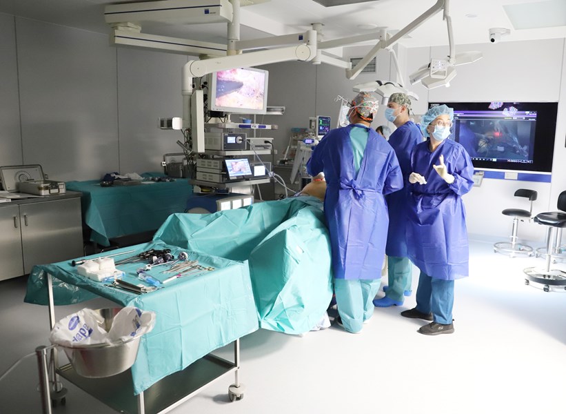 Освен богатата лекционна програма, участниците ще имаха уникалната възможност да надникнат в изцяло реновината операционна зала на Клиника по ендоскопска, ендокринна хирургия и колопроктология и да общуват директно със специалистите там – иноватори с богат опит. Те наблюдаваха в реално време „Лечение на комплексна вентрална херния с лапароскопска задна компонентна сепарация”.
