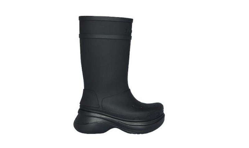 Луксозната парижка марка "Balenciaga" започва сътрудничество с популярната марка "Crooks" и създава джапанки с… токчета, както и ботуши с подметка на известните гумени чехли.