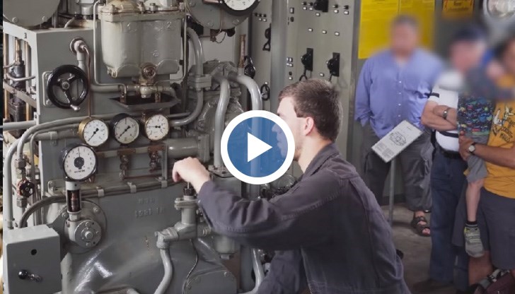 Сътредници на музея в Кил, Германия, пуснаха двигател от немска подводница, използвана по време на Втората световна война.