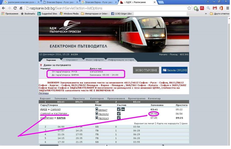 На този линк е разписанието на БДЖ. Онова, което ни интересува, е в самият му край – на последните страници.