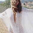 Актрисата е облечена в бяла, прозрачна туника и е разтворила широко ръце, пише dir.bg.