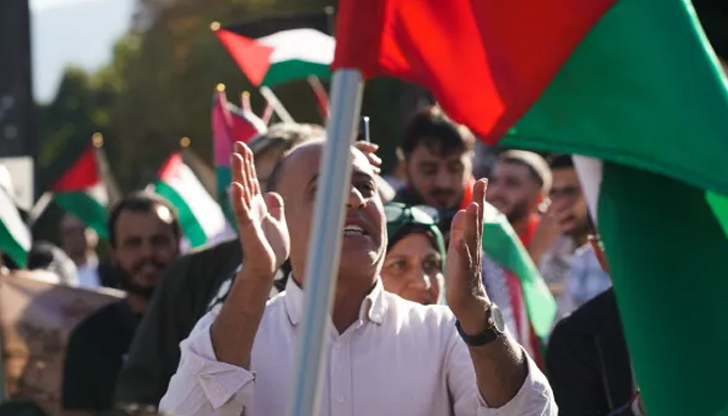 Шествие няма да има, продължава мирната демонстрация на палестински граждани и българи, които се обявяват в солидарност на Европа и на Палестина.