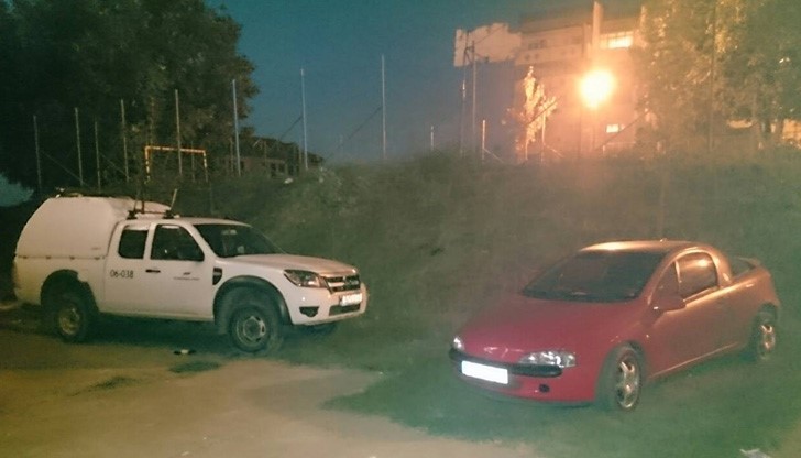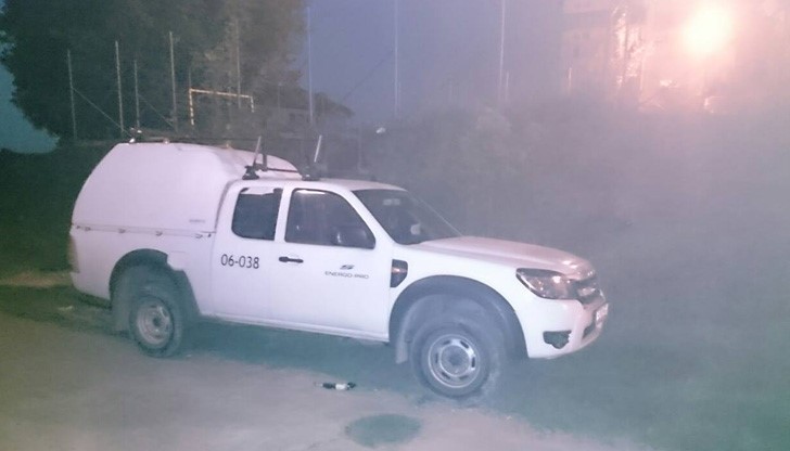 Автомобил на енерго-про, паркиран на озеленена междублокова площ, в жк. Дружба 3, бл. 41