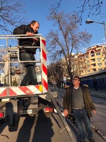 На горещите молби веднага се отзовал и другият смелчага, Живко. Заедно с автовишката си, той пристигнал до дървото, на което се намирало котето.
