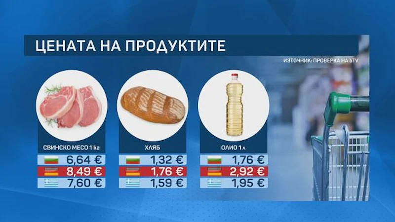Същевременно има продукти, при които България е по-конкурентна. Свинското месо, хлябът и олиото се предлагат на по-ниски цени в сравнение с Германия и Гърция.
