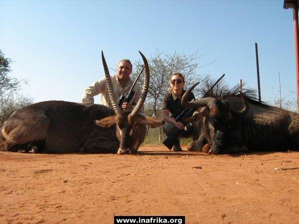 Гордият ловец позира до безжизнените тела на животните с широка усмивка, жена му също не остава в сянка.