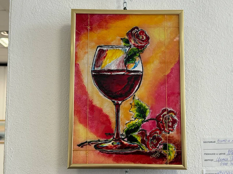 Посетителите могат да видят творби, изпълнени с различни техники – акварел, маслени и акрилни бои. Тематичният диапазон на изложбата обхваща класически натюрморти и пейзажи, както и фигурални композиции и интерпретации на темата за голото тяло, свързани с празниците на виното и любовта.