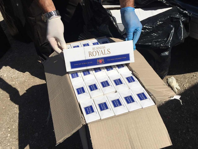 В багажника на колата, тип „комби", митническите инспектори откриват 4500 кутии цигари без български акцизен бандерол. Тютюневите изделия били разпределени в кашони и чували. Всички цигари са от марката „Business Royals", с надпис на латиница върху опаковките „Duty free sale only". Общото количество се равнява на 90 000 къса.