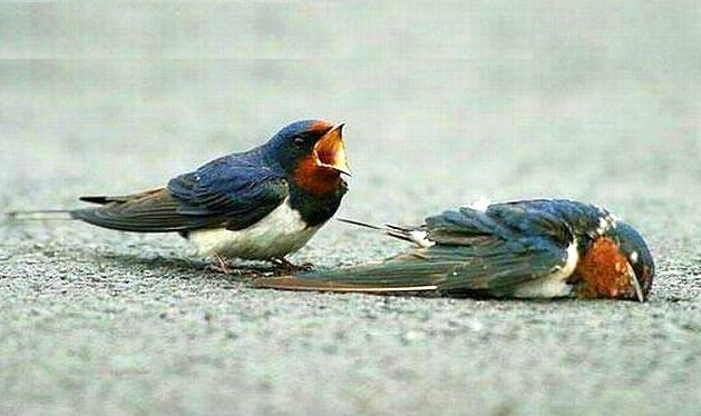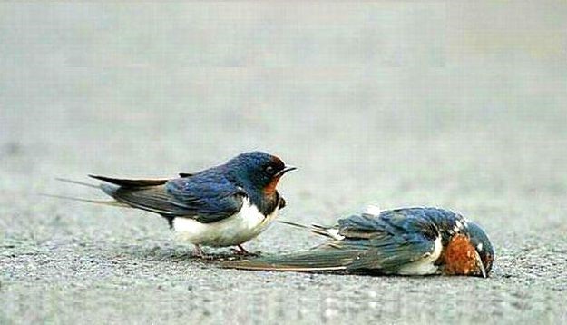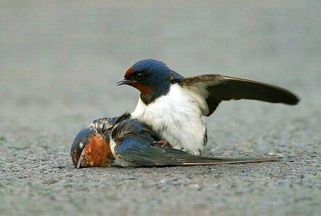 Мъжката лястовичка донася храна на ранената си половинка отново и отново, но след няколко часа я намира мъртва.