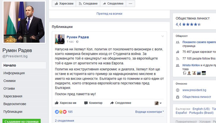 Президентът Румен Радев също почете паметта на емблематичния политик.