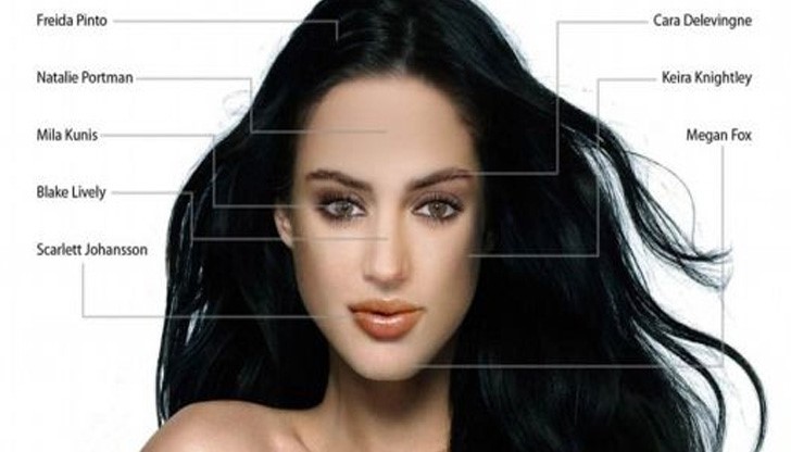 А така изглежда идеалната жена според жените: Дамите, от своя страна, копнеят да притежават буйна коса като на Фрейда Пинто, очите на Мила Кунис, плътни устни като на Скарлет Йохансон, носът на Блейк Лайвли, брадичката на Меган Фокс, скулите на Кийра Найтли, веждите на Кара Делевин и челото на Натали Портман.