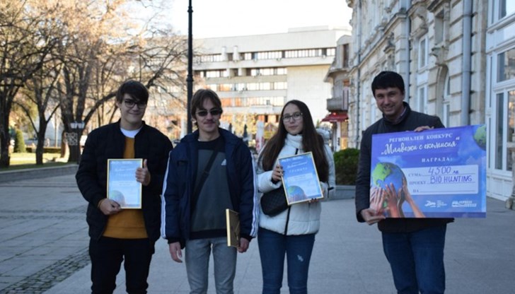 Димитър Попов, Ерин Сабриева и Момчил Христов от МГ „Баба Тонка“, които демонстрираха възможността ловни патрони да послужат за появата на нова растителност в обезлесени места, са победителите в регионалния конкурс „Младежи с екомисия“.