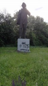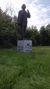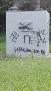 Сега той е “захвърлен” на една от височините на миньорския град, а местни жители го изрисуваха с крайно дясна, националсоциалистическа символика паметника на комунистическия вожд, алармира 7 Дни Банско.