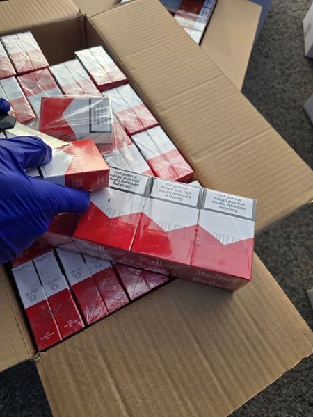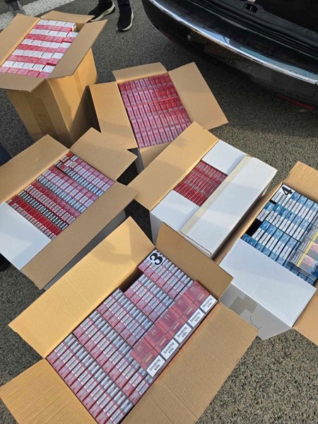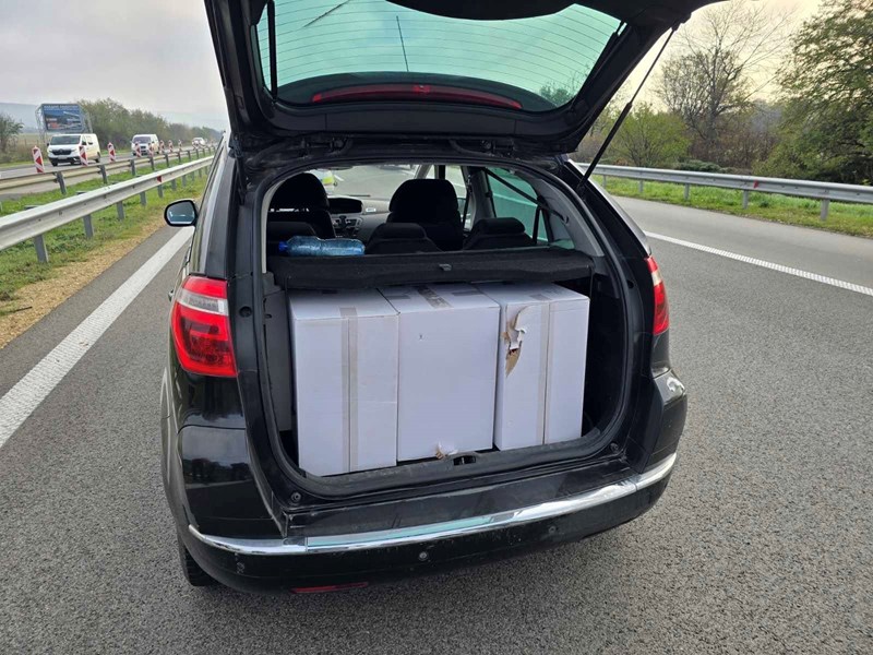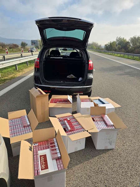 При проверката на лек автомобил полицейските служители откриха голямо количество цигари от различни марки, скрити в превозното средство. По първоначални изчисления стойността на задържаната контрабандна стока е около 32 000 лева.