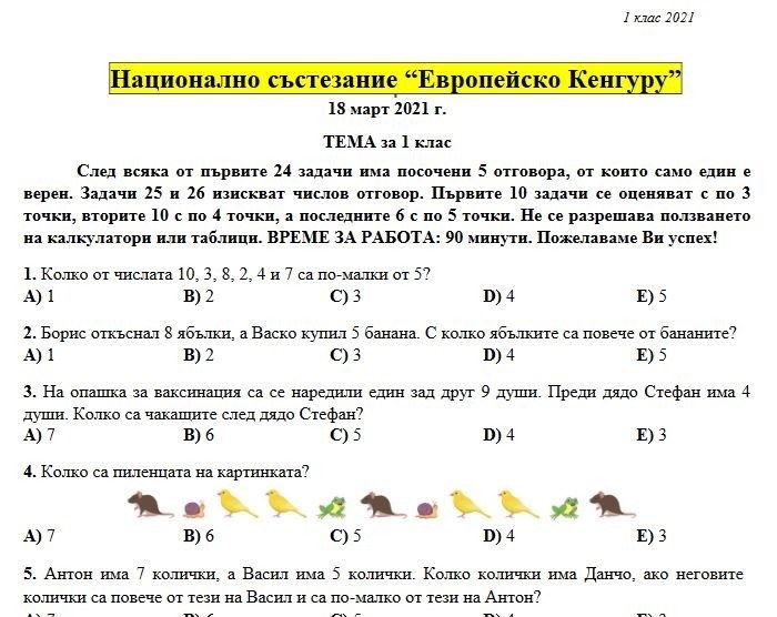 Има ли в учебния материал за първи клас задачи за ваксини?