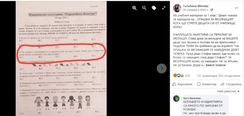 През последните дни популярност във Facebook събира публикация с твърдението, че ваксинирането е тема в учебния материал за първи клас, разкрива БНР.